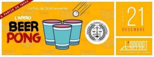 On vous attend avec impatience jeudi 21 décembre à partir de 18h30 pour un before beer-pong à l’Appart avec entrée à 3 euros. A vos gobelets !