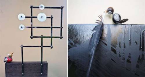 Jean-Pierre Allera démythifie à sa manière quelques formes et concepts hérités de l’Art moderne : ready-mades, assemblages dadaïstes et clins d’œil marqués à quelques icônes du XXème siècle sont au rendez-vous.