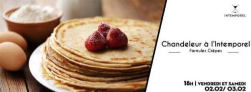 À l’occasion de la CHANDELEUR, INTEMPOREL BAR vous propose une CRÊPE PARTY du Vendredi 02 Février 2018 au Samedi 03 Février 2018.