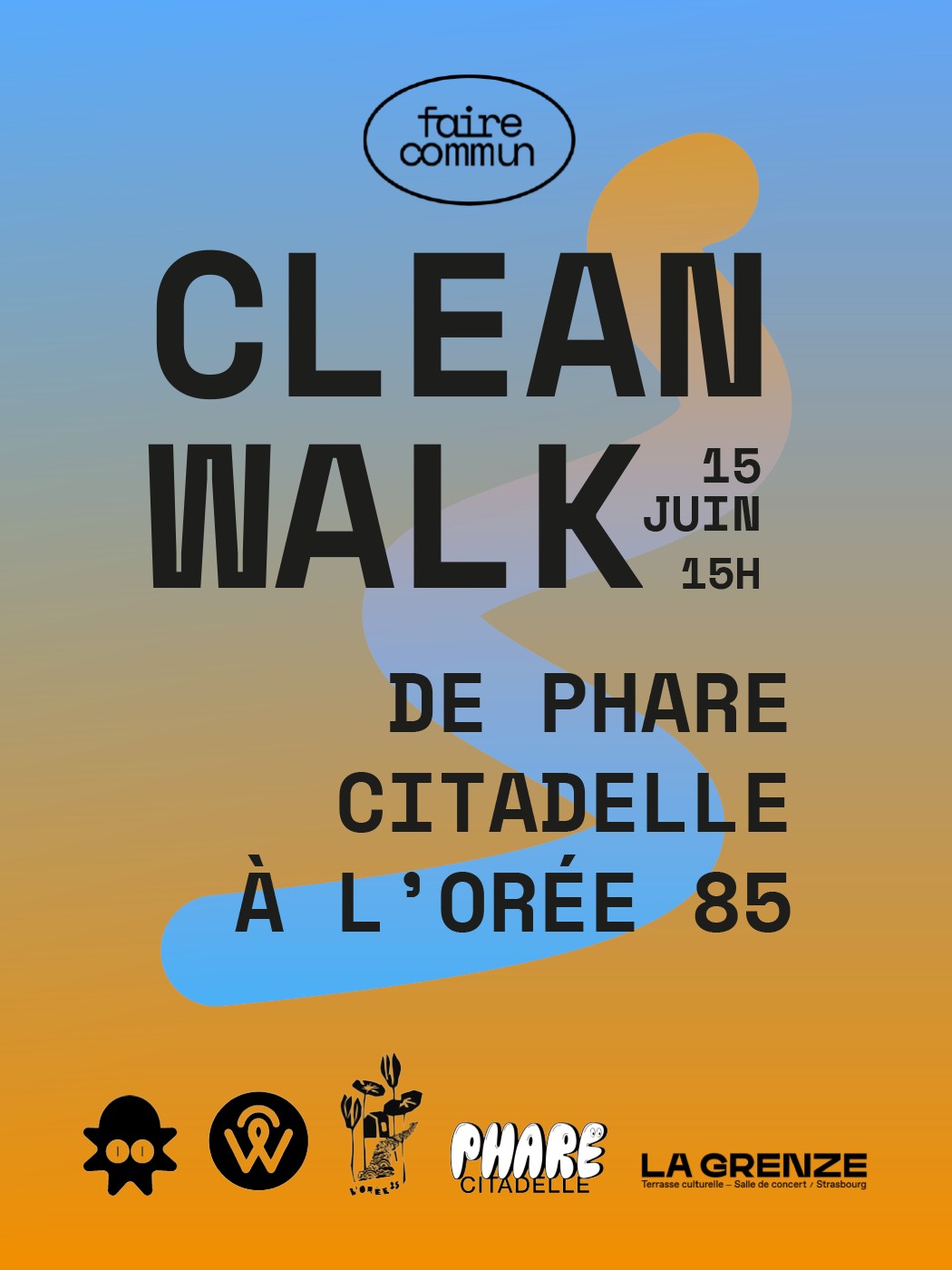 La première entre Phare Citadelle et l'Orée 85 aura lieu le samedi 15 juin, la seconde le samedi 20 juillet entre l'Orée 85 et La Grenze et la troisième pour finir, le samedi 14 septembre entre La Grenze et Phare Citadelle. Nous réunir au travers de cette opération de dépollution, partager un même objectif et y parvenir ensemble, ces clean walk seront les premiers pas de notre collectif : Faire Commun.