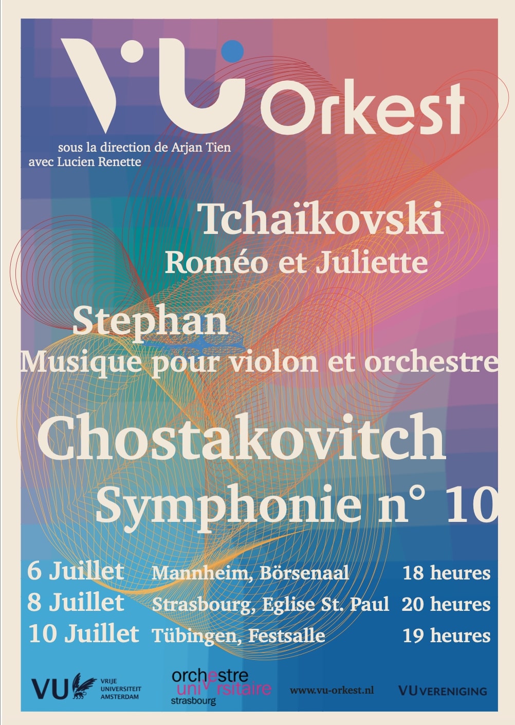 L’Orchestre Universitaire de Strasbourg accueille l’orchestre universitaire de l’université libre d’Amsterdam (VU-Orkest) ! Les 85 musiciens étudiants de la Vrije Universiteit Amsterdam feront escale à Strasbourg dans le cadre d’une tournée pour y donner un concert symphonique.