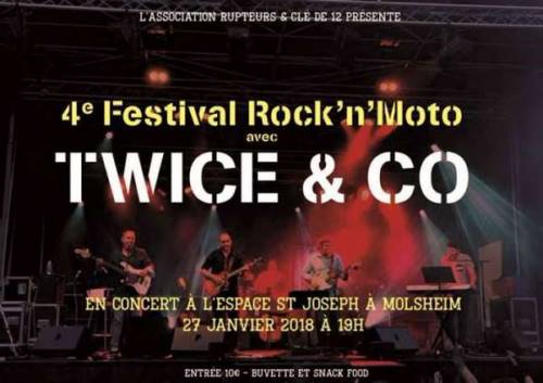 Pour son 4ème Festival Rock’n’Moto l’association Rupteurs&clé 12 vous propose un concert du groupe Twice&Co. Répertoire : pop, folk, country, reggae.