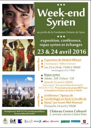Partagez un week end Syrien au château centre culturel de Saint Max, les 23 et 24 avril 2016 au profit de la Fondation les enfants de Syrie.