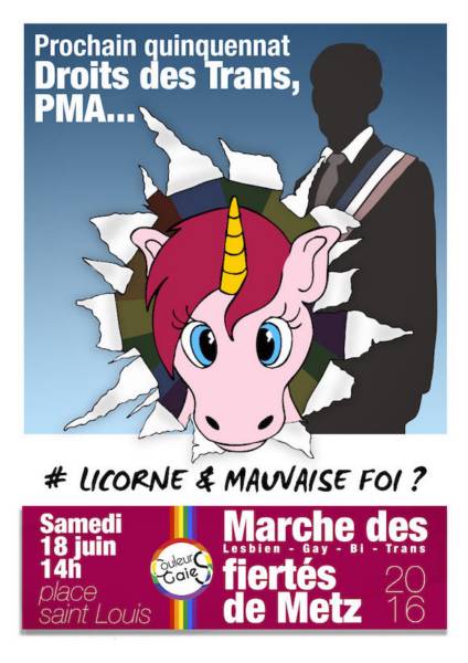 La marche des fiertés, également appelée Gay Pride, est organisée à Metz le samedi 18 juin 2016.