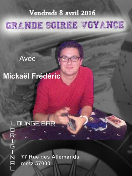 Suite à l’immense succès de sa dernière venue à l’Original, Mickaël nous fait l’honneur de revenir parmi nous Vendredi 8 avril à partir de 20h30 pour à nouveau exercer son grand talent.et vous donnera droit à une question gratuite sur votre avenir....