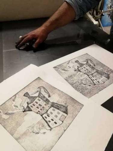 Nous verrons tout le cheminement de la gravure : de l’élaboration d’une image, à la fabrication d’une matrice et de son impression.