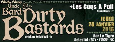 Pour être en forme toute l’année, rien de tel qu’un ptit concert d’Irish Folk en janvier ! L’association Cheeky Cherry a l’immense plaisir d’accueillir Uncle Bard and The Dirty Bastards le jeudi 28 janvier à Sélestat. Déjà sur la scène du Tigre en 2014, ils avaient mis le feu et retourné votre pub préféré pour la plus grande joie du public et ils sont bien décidés à recommencer ! Si vous aimez la musique irlandaise survitaminée, la bière et la bonne humeur, ne manquez pas cette soirée !