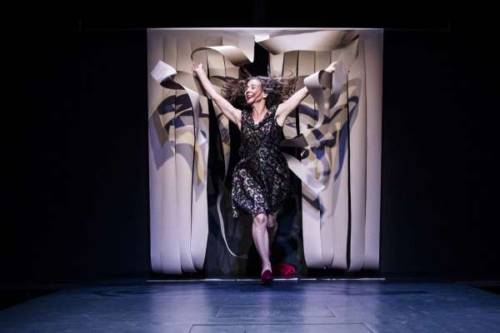 Dans un espace forain circulaire, Jeanne Mordoj signe un septième solo entre flânerie corporelle et vagabondage géographique. Incroyable de présence, l’artiste dessine ses paysages intérieurs et crée des figures intimes en utilisant des matières simples comme le papier. Les pages se transforment en animal qu’elle chevauche avant de finir en lambeaux. Au centre de l’arène, elle exhibe son corps et sa voix, plonge dans l’errance sensorielle et spirituelle. Cette quarantenaire, qui ne se laisse jamais enfermer dans les catégories trop étroites, dose l’humour et l’autodérision pour mieux nous emporter dans ses réflexions métaphysiques. Portées par les improvisations de Mathieu Werchowski au violon, ses métamorphoses profondes et drôles se muent en quête identitaire où la ventriloquie trouble les sens. Elle déploie un champ de rêveries en forme d’éloge aux zones de liberté artistiques et à la pluralité qui nous fonde.