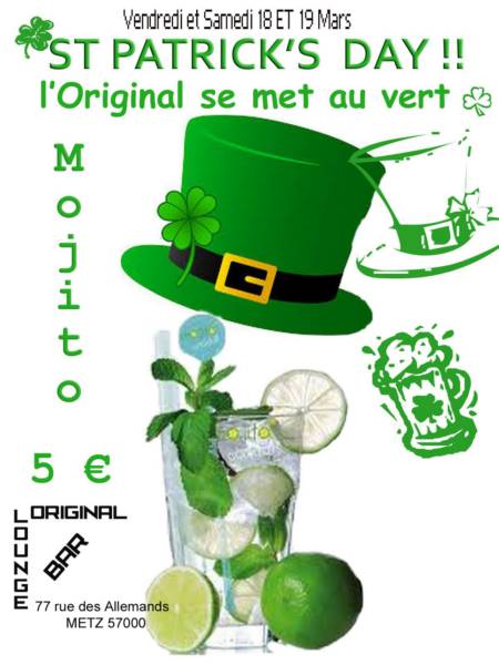 Ce week end, on fête la St Patrick’s vendredi et samedi l’Original se mettra au vert avec les mojitos à 5€ !!!