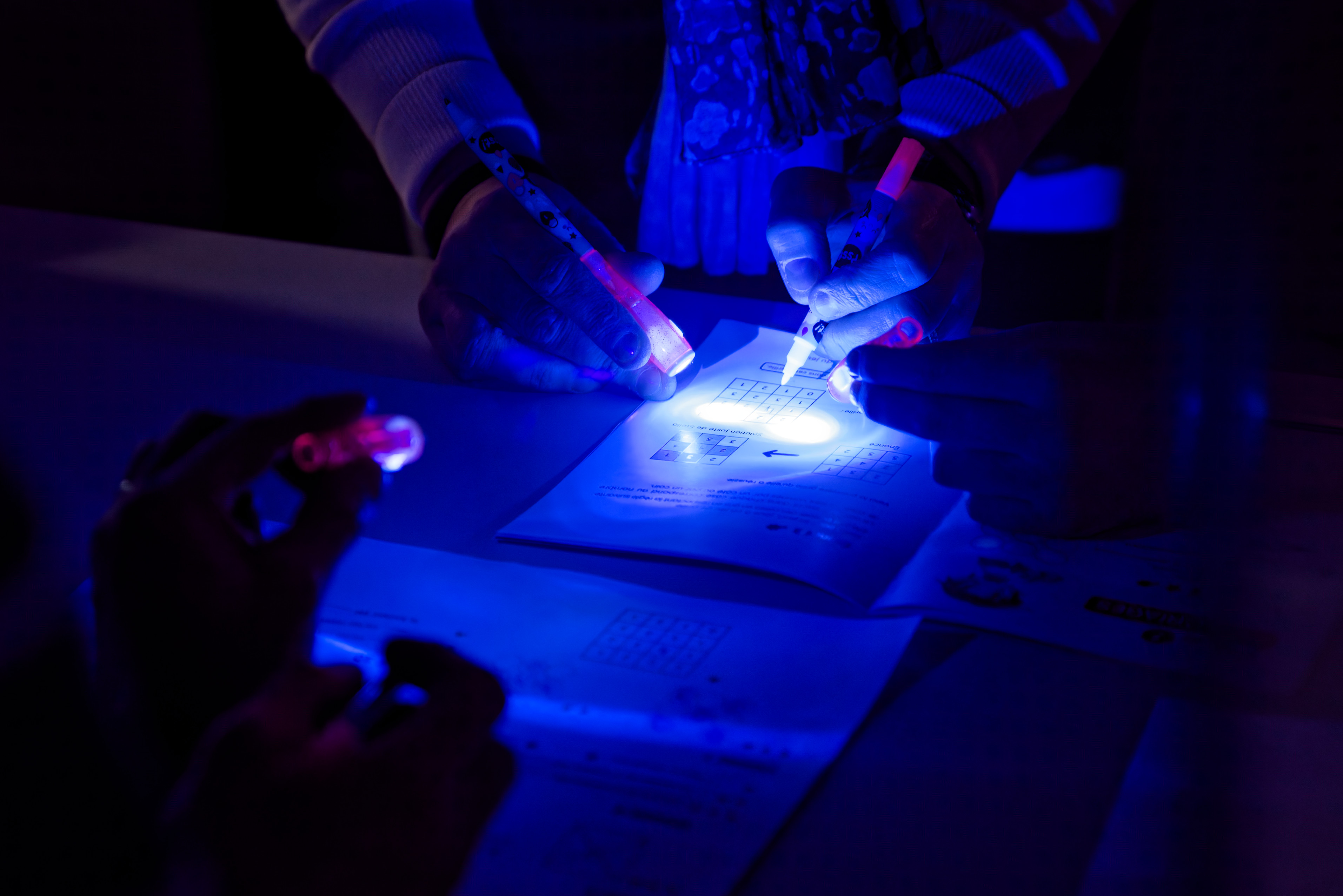 En une heure, trouvez le maximum d'énigmes mathématiques cachées dans le Vaisseau et répondez au plus grand nombre ! Vous évoluerez dans la pénombre et serez équipés de lampes UV qui révèleront une encre invisible au mur !