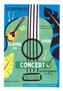 LA SERENATA de Schiltigheim est un orchestre de mandolines accompagnées par les mandoles, liuto cantabile, guitares et contrebasse, sous la baguette de Marine Mairet, cheffe dynamique qui est également violoniste soliste et enseignante de violon. Cet Orchestre à Plectre (OAP) interprète des pièces baroque, classiques, modernes, populaire et traditionnelles ou écrites pour les films comme Chi Mai, Borsalino, Le temps des cathédrales ou Danse mon Esméralda. Pour ce 92ème Anniversaire et lors de cette Fête de la mandoline, le programme se composera d’extraits d'un répertoire varié où figurent : Carolan, E. Mezzacapo, R. Cocciante, Yoshitomo, Rudolf Krebs, Calace, L. Cohen, et Sylvain Dagosto qui a composé et arrangé spécialement pour la mandoline et les OAP .