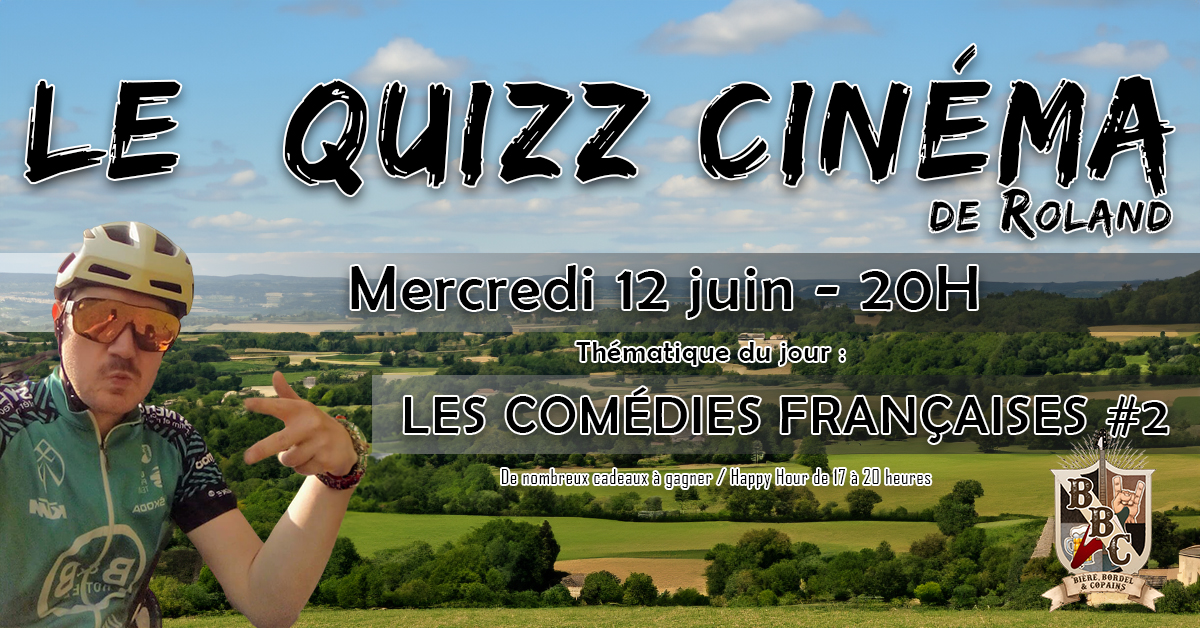 Le QUIZZ CINE de Roland vous plongera dans l'univers déjanté des comédies françaises, des films cultes aux pépites méconnues. De Louis de Funès à Dany Boon, en passant par les incontournables du cinéma français, testez vos connaissances sur les répliques mémorables, les personnages loufoques et les situations comiques inoubliables. ??