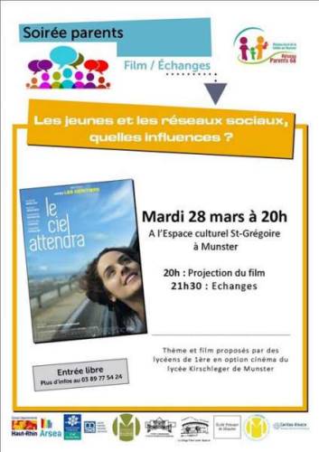 Le film Le ciel attendra sera diffusé en première partie de soirée sur proposition des élèves de 1ère option cinéma du Lycée Kirschleger de Munster.