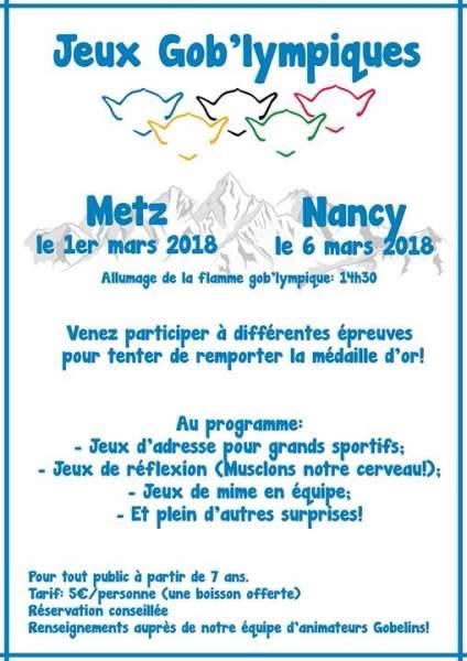 Vous voulez faire partie de la sélection des joueurs qui s’affronteront lors des premières Gob’lympiades, le 1 mars à Metz, le 6 mars à Nancy?