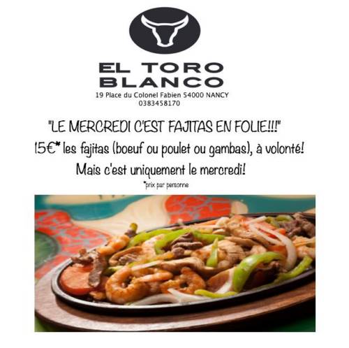 Le mercredi c’est fajitas en folie au Toro Blanco!