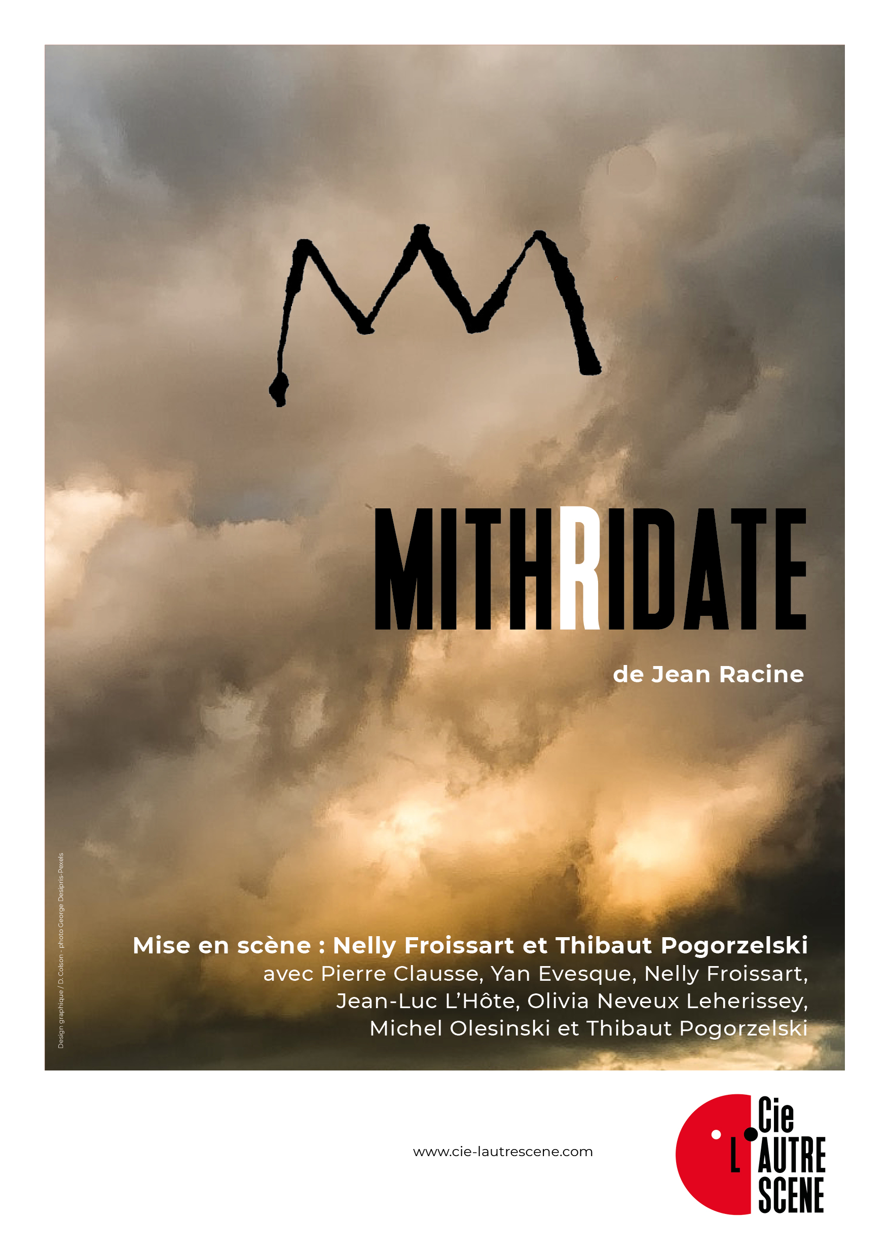 Mithridate, le souverain d’Orient fatigué par des années de guerre contre Rome, voit son empire décliner et son pouvoir lui échapper. Sur le champ de bataille, sa mort est annoncée et la rumeur vient embraser le palais : Xipharès et Pharnace, ses deux fils, s’affrontent pour gagner le coeur de celle qui fut promise au trône, Monime. Mais le bateau du Roi accoste au port : Mithridate n’est pas mort. S’engage alors, à coups de rimes et de corps, une lutte intestine entre les trois hommes sur les bords de la Mer Noire".