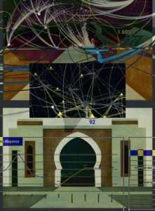 Utilisant la peinture sur bois et la recherche de la géométrie dans les différentes architectures, elle fera dialoguer en parallèle Strasbourg et Fès, par le prisme d’un dialogue formel, symbolique mais aussi géographique, en se jouant de la topographie des deux villes.