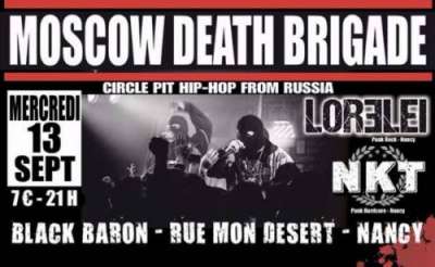 NKT Punk Hardcore de Nancy ouvrira le bal suivi de près par Lorelei Punk Rock de Nancy et le troisième Moscow Death Brigade (Rap Hardcore Punk) de Russie !
