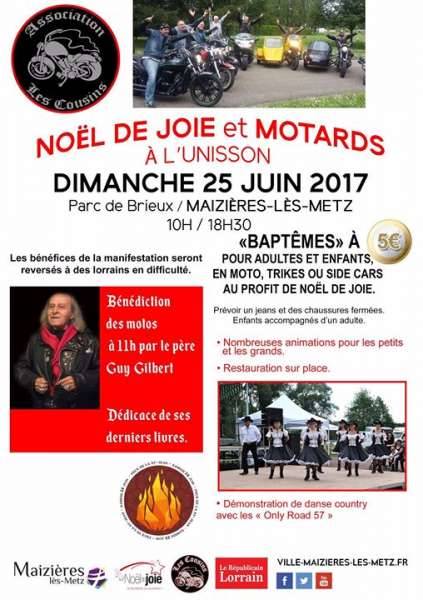 "Noël de Joie", "Association les cousins" et "Motards à l’Unisson" vous attendent de 10h00 à 18h30 au parc de Brieux de Maizières-Lès-Metz pour une fête des motards (mais pas que).