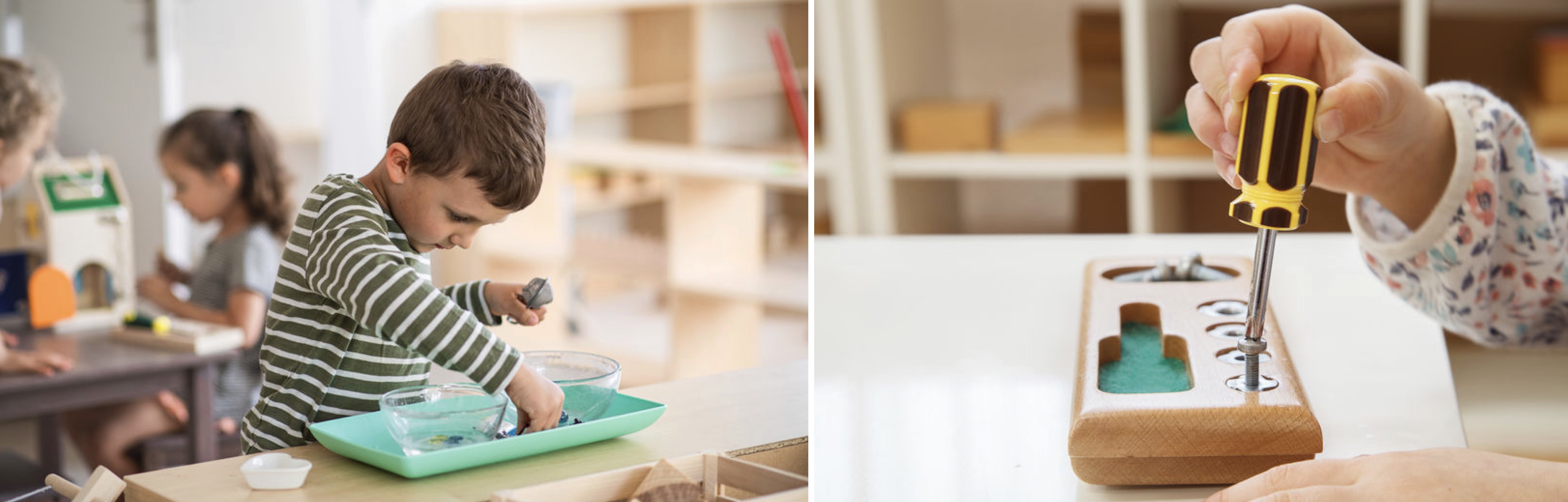 Lors de cet atelier utilisant le matériel inspiré de la pédagogie Montessori, votre enfant découvre ses capacités d’attention, de concentration et de résolution de problèmes. Grâce à une diversité de petits « plateaux » et d’activités proposées, il est libre de manipuler et de s’exercer à faire seul. Accompagnés par une éducatrice, choisissez l’activité qui lui correspond et apprenez à les adapter pour les reproduire à la maison.