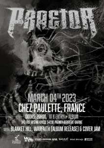 En 2023, Praetor sortira enfin son premier album éponyme très attendu. Avec des singles et des concerts aiguisant la curiosité du public, le groupe répond enfin aux appels de ses fans avec cette release party. Des riffs furieux, des lignes de basse uniques et une batterie tonitruante sont combinés pour évoquer le mélange ultime de thrash et de metal, distillant parfaitement le son et l’identité du groupe. Préparez-vous à la découverte la plus excitante de l’année du milieu du thrash metal. Warfaith et Blanket Hill, artistes bien connus de la scène, s’associeront à Praetor pour une soirée de sortie inoubliable le sam. 04 mars. Praetor a été fondé en 2019 lorsque les quatre musiciens ont uni leurs forces après avoir joué ensemble dans des groupes Tribute pendant des années.