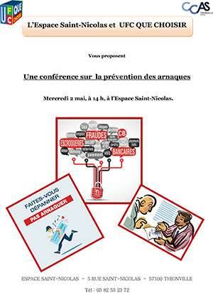 L’association de consommateurs "UFC Que Choisir" et l’Espace Saint-Nicolas vous propose une conférence sur la prévention des arnaques.