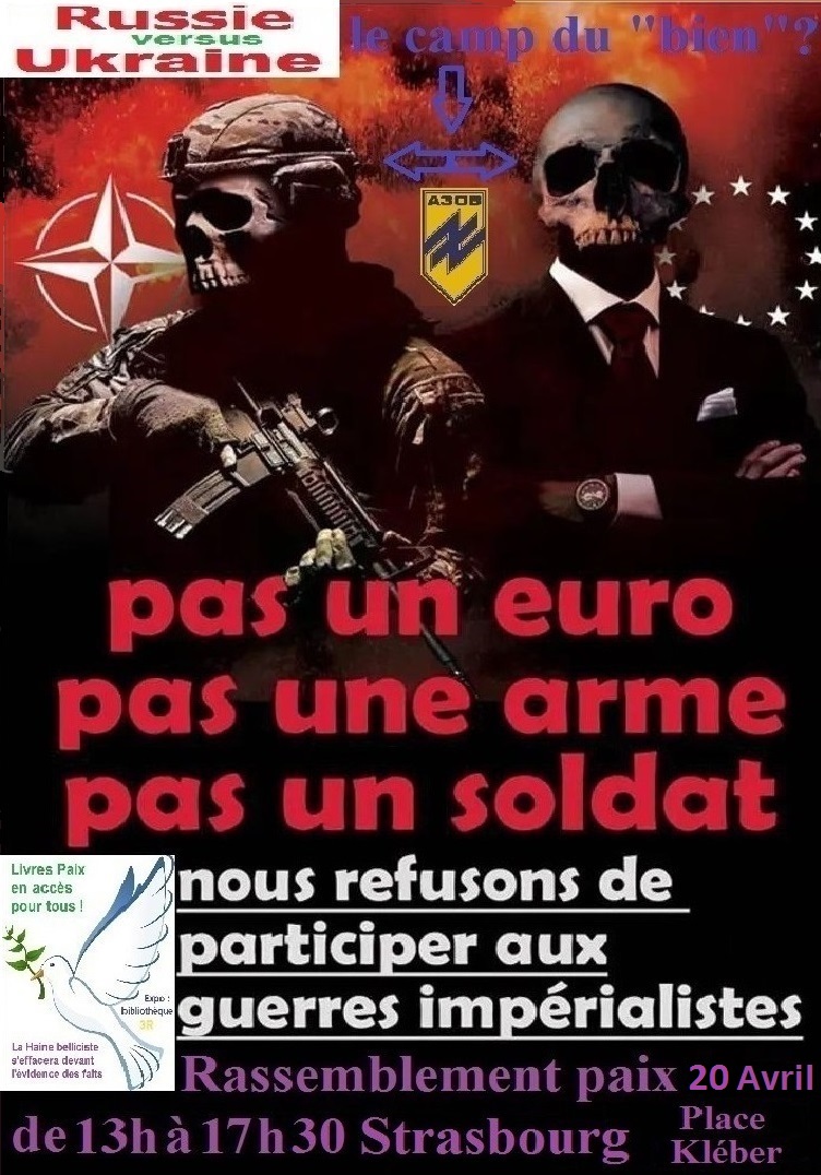 Pour le 20 avril, devinez qui est G.A, l’idiot utile des Bandéristes qui scandaient « Slava Ukraini ! » ? Samedi Place Kléber ; osez la paix où préparer votre parquetage/linceul de légionnaire internationaliste pour l’Ukraine !