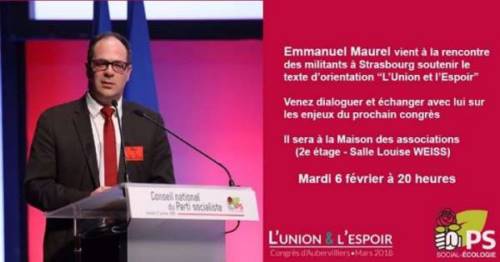 Emmanuel Maurel, député européen, vient à la rencontre des militants à Strasbourg pour présenter son texte d’orientation l’Union & l’espoir, déposé dans le cadre du 78e Congrès du Parti Socialiste, et sa candidature au poste de Premier Secrétaire.