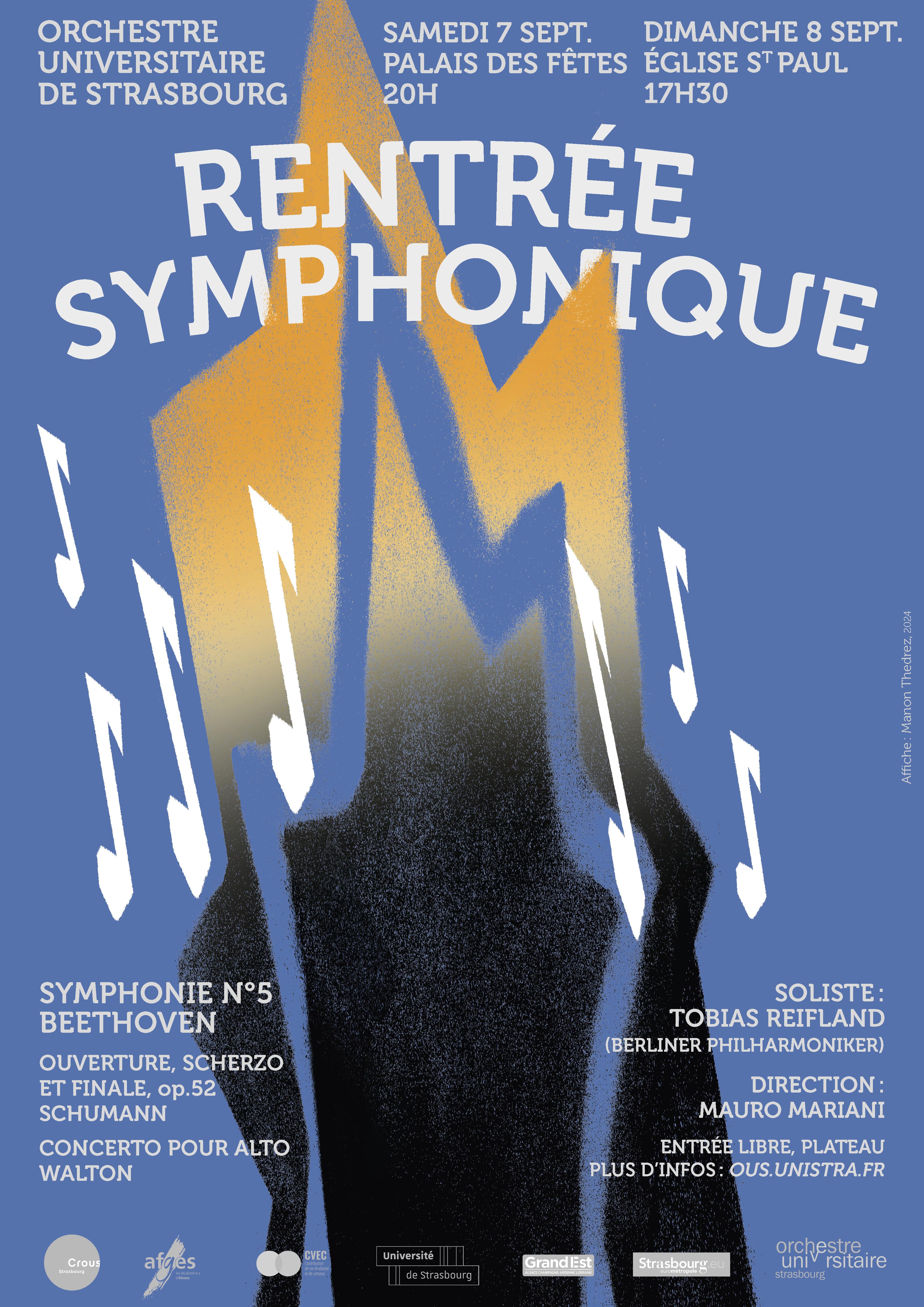 L’orchestre universitaire de Strasbourg est honoré d’accompagner Tobias Reifland, musicien de l’Orchestre Philharmonique de Berlin (Berliner Philharmoniker), reconnu comme un des meilleurs orchestres du monde, dans le concerto pour alto de Walton. Il s’agit d’une formidable opportunité d’entendre un musicien de grand talent interpréter une des oeuvres de référence pour alto solo. Ne ratez pas cette occasion unique !