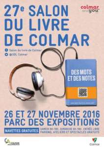 La 27e édition du Salon du Livre de Colmar ouvrira ses portes au public les samedi 26 et dimanche 27 novembre 2016, au Parc des Expositions de Colmar.