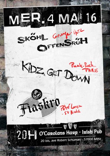 Le Mercredi 4 mai on va se bouffer du grunge et du kepon dans la face au CARO!!! Pas de panique, le lendemain c’est férié!! Et comme d’hab c’est gratuit!! Petit K-DO du O’Carolan’s Harp à ses clients préférés!!