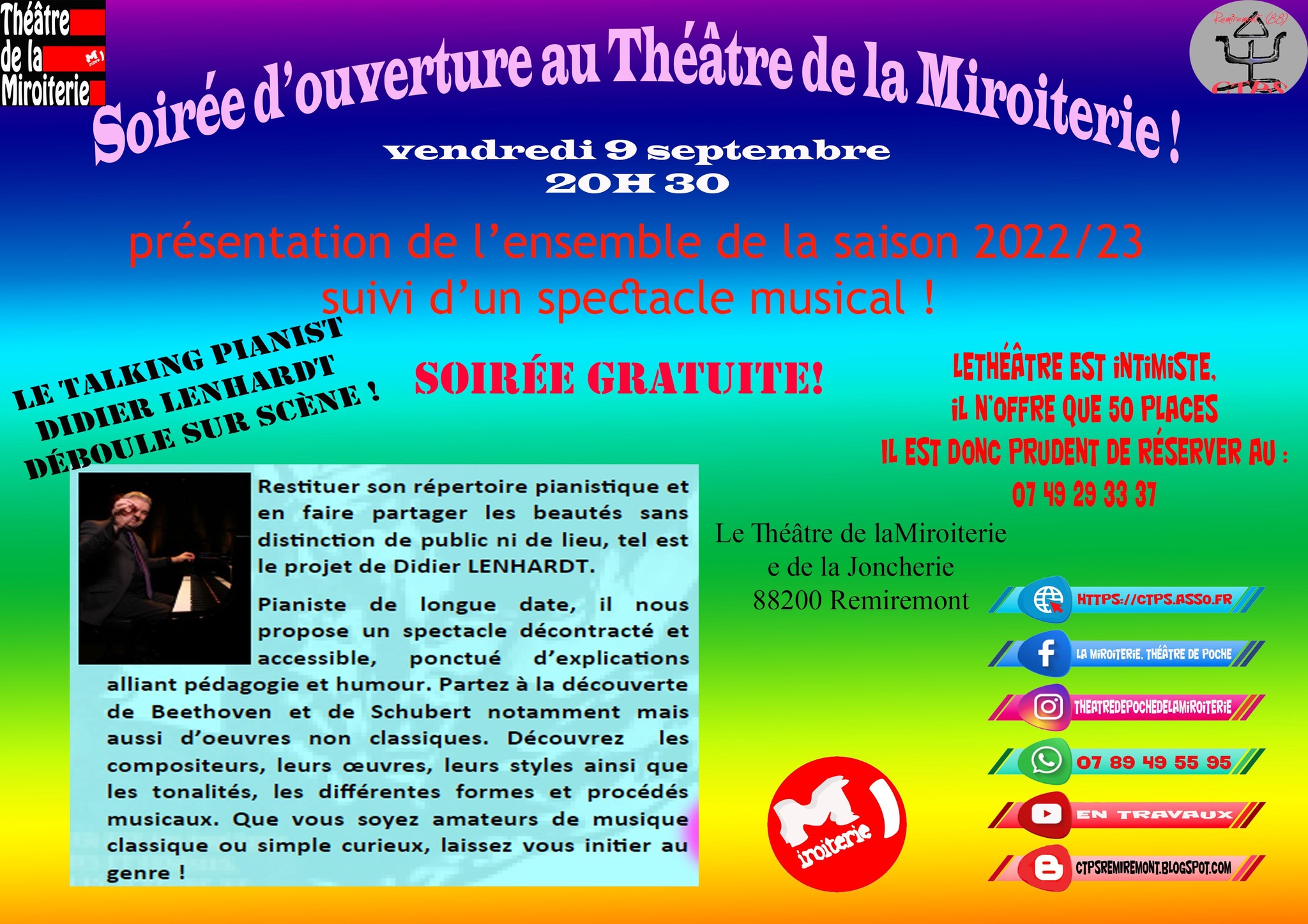 Soirée de présentation de la saison 2022/23 suivi d'un spectacle musicla. Remise du programme (support papier)