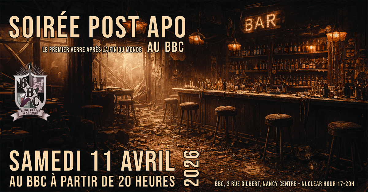 Samedi 11 avril 2026, à partir de 20h, le BBC devient officiellement l’un des derniers bars encore debout après la fin du monde.