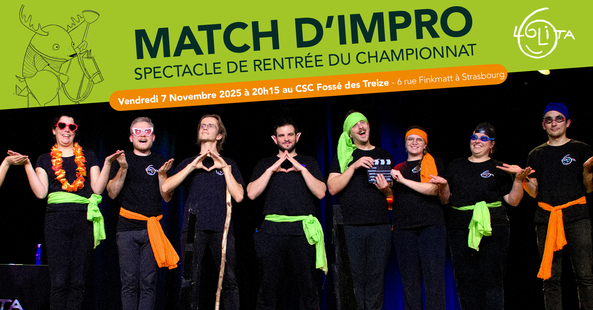 Après ce fabuleux mondial de l'impro, la Lolita a repris des forces, elle a changé ses équipes, et les matchs de championnat s’apprêtent à reprendre pour mener l’une d’entre elles vers le trophée de la grande Finale. Mais qui dit nouvelles équipes dit présentation bien évidemment, et ce spectacle est là pour ça : 2 membres de chaque team se réuniront pour un match de démarrage de saison, l’occasion de découvrir les concepts qui se cachent derrière ces 5 noms d’équipes énigmatiques :