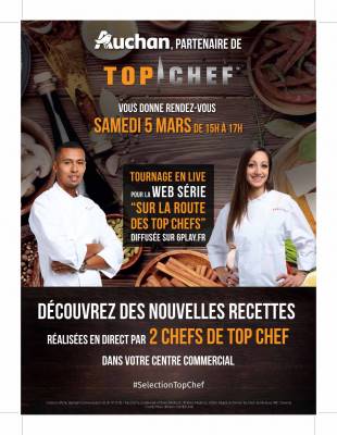 Durant 2 heures, les deux professionnels auront comme challenge de revisiter avec talent et créativité des recettes réalisées à base de produits de la Sélection Top Chef reconnus pour leur qualité et leur saveur. Des échanges conviviaux entre les visiteurs de la galerie commerciale et ces avant-gardistes de la cuisine se poursuivront au-delà des saveurs gustatives. Des séances de dédicaces organisées dans la galerie vers 16h30, viendront couronner cet après-midi gourmand et les selfies réalisés immortaliseront ces moments sympathiques et chaleureux.