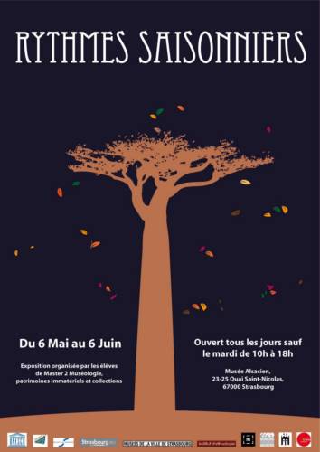 Les étudiants du Master 2 Muséologie : patrimoines immatériels et collections de l’Université de Strasbourg ont conçu à partir de la collection Lebaudy-Griaule de l’Institut d’Ethnologie, des collections du Musée Alsacien et de collectionneurs privés l’exposition Rythmes saisonniers, au musée alsacien du 6 Mai au 6 Juin 2016.
