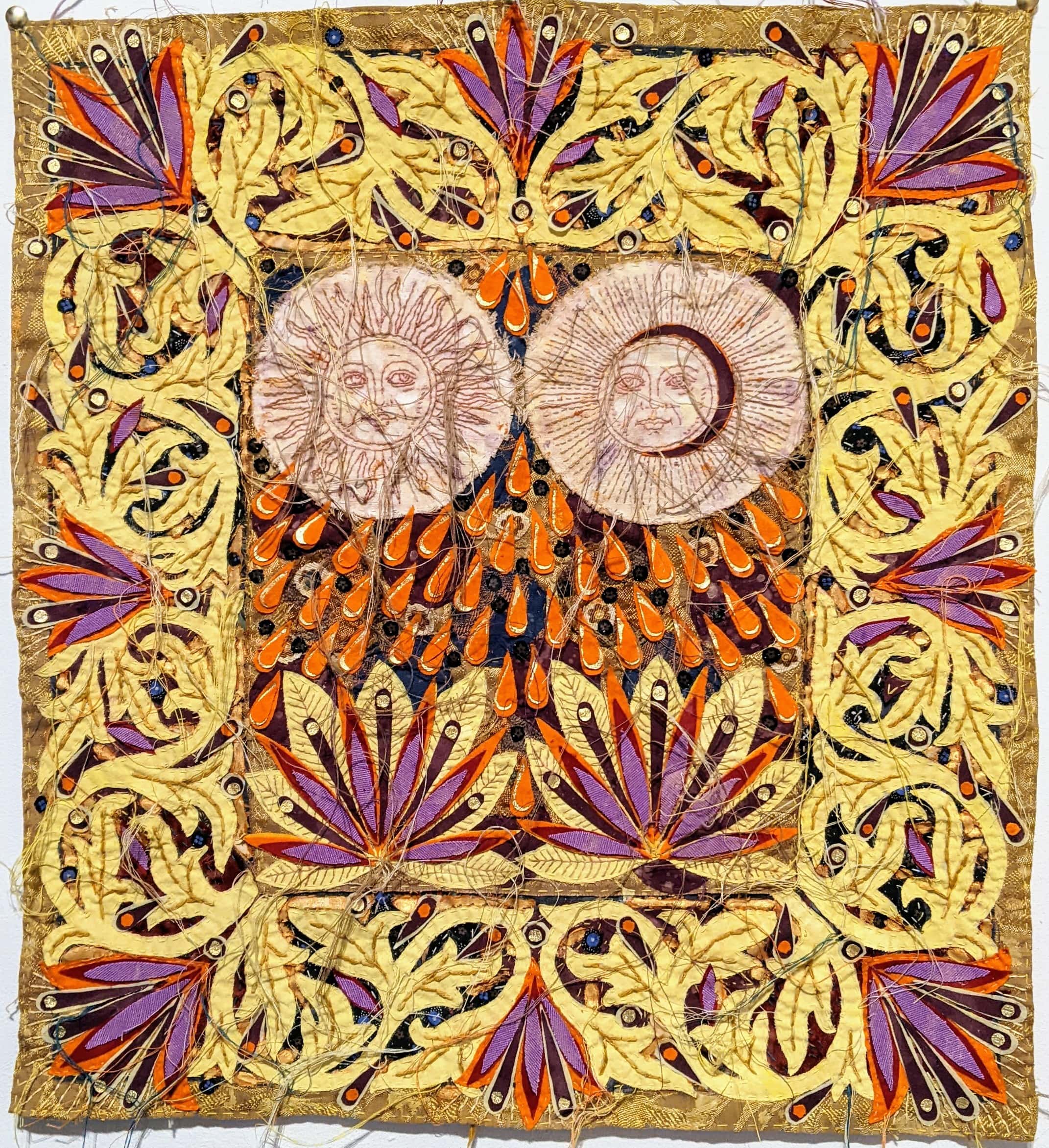 « J’aime l’idée qu’un tableau ne livre pas son sens dès les premiers instants où il est vu, ou plus précisément qu’il puisse offrir différents niveaux de profondeur. Comme dans un jardin, comme dans un tapis, les formes végétales dissimulent autant qu’elles révèlent, invitant à se perdre parmi les entrelacs et les ombres, afin, peut-être, de laisser peu à peu affleurer les voix inaudibles, celles de la nature, des saisons, du cosmos, des esprits – autant de voix que nous ne prenons plus assez le temps d’écouter.