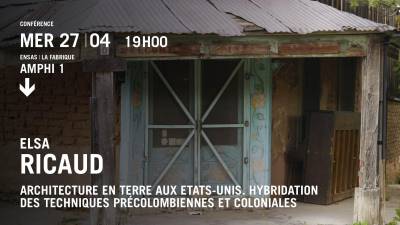 MERCREDI 27 AVRIL À 19H : Conférence "Architecture en terre aux États-Unis" par Elsa RICAUD / Entrée libre