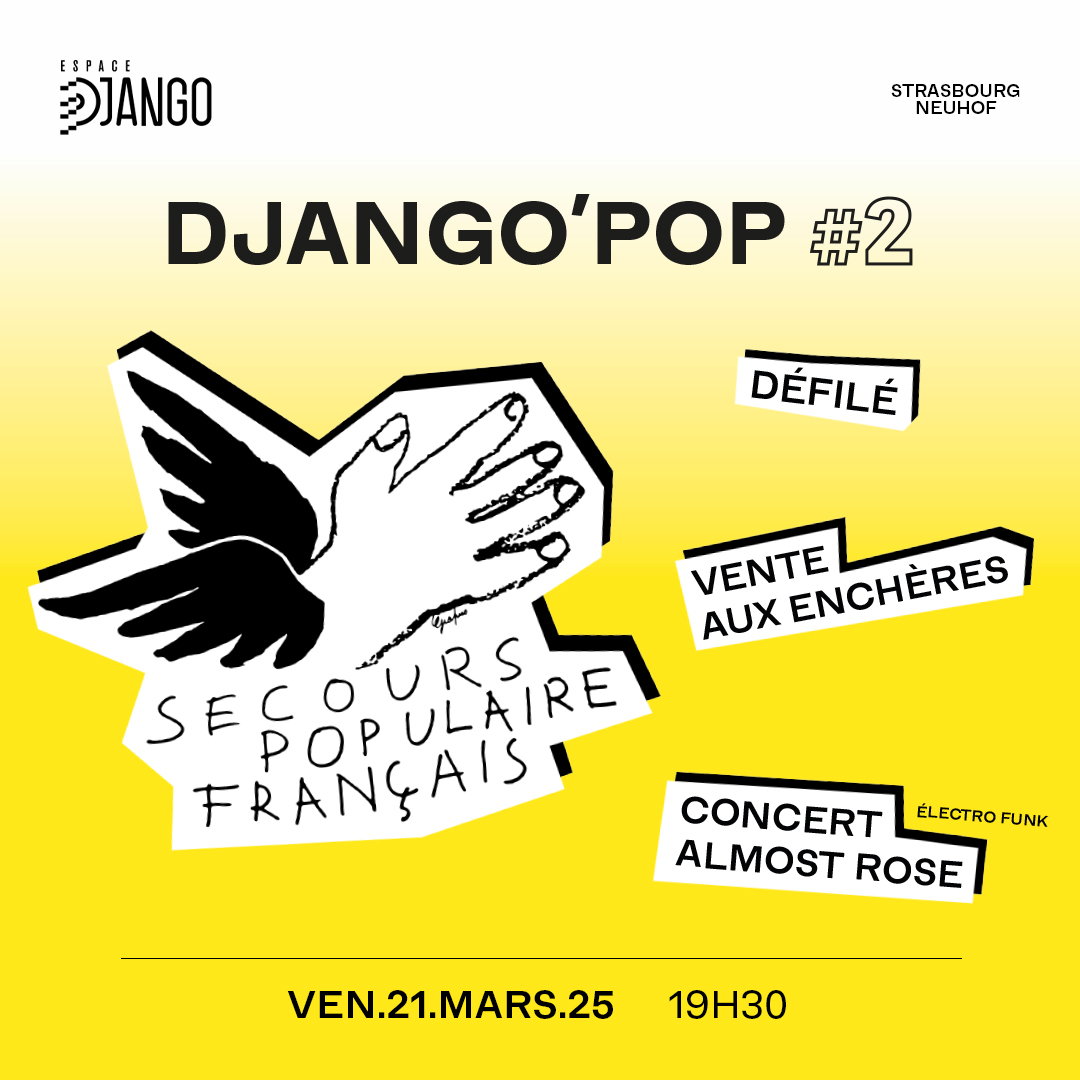 Après une première édition mémorable, le Secours populaire et l’Espace Django remettent le couvert pour un nouveau Django’Pop ! Le principe et les ingrédients restent les mêmes pour les deux structures neuhofoises, une soirée festive et rassembleuse pour lever des fonds qui financeront des projets solidaires. Et que dire du programme de cette soirée en trois temps : un défilé mettant à l’honneur le réemploi et la création artistique locale, une vente aux enchères et un concert disco électro funk.