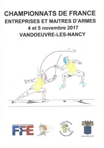 le Cercle d’Escrime de Vandoeuvre-lès-Nancy organise le samedi 4 et le dimanche 5 novembre 2017 les « CHAMPIONNATS DE FRANCE ENTREPRISES ET MAITRES D’ARMES », au Parc des Sports des Nations, rue de Gembloux à Vandoeuvre-lès-Nancy.