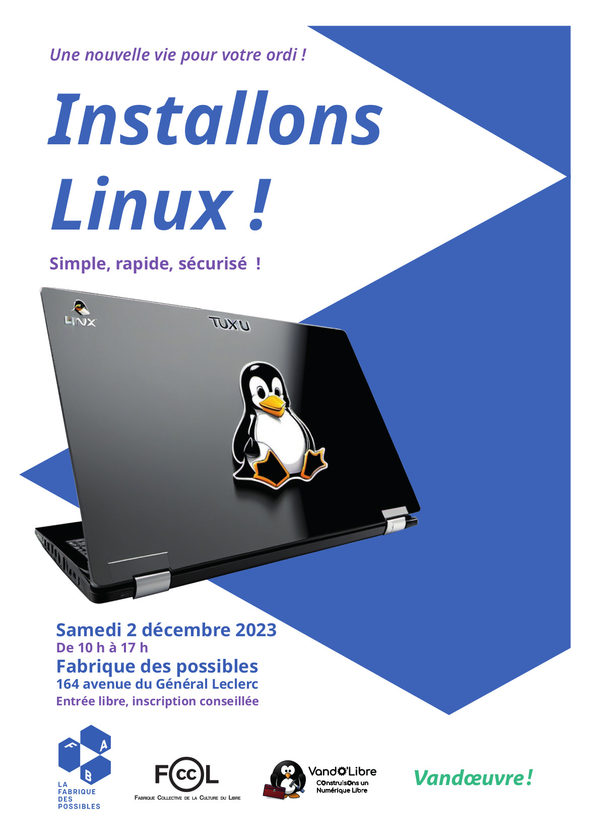 Informations complémentaires concernant l’atelier Installation de Linux sur votre ordinateur, disponibles sur notre site web.