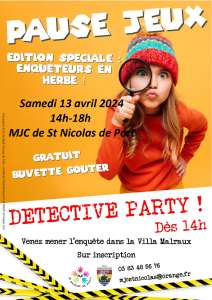 Inscriptions obligatoire pour la Détective Party à mjcstnicolas@orange.fr