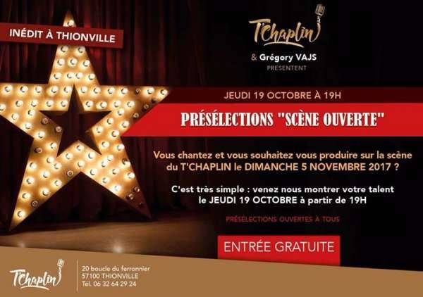 Si tu es sélectionné après ta prestation alors tu pourras te produire pendant 10 à 15 minutes dimanche 5 novembre 2017 entre 15h et 18h sur la scène du T’CHAPLIN.