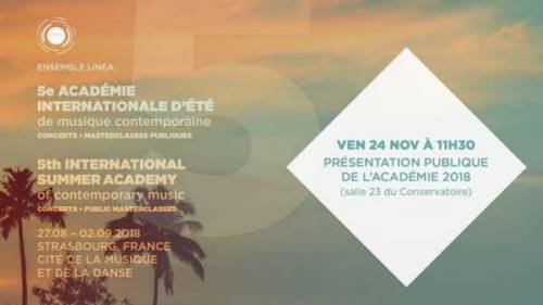 Rendez-vous en salle 23 du Conservatoire pour une courte présentation de l’académie internationale linea 2018, images vidéo à l’appui, qui sera suivie d’un cocktail !