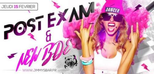 A l’occasion de la fin des examens et le nouveau BDE qui se met en place, ADEOS Amicale des Etudiants Ostéopathes de Strasbourg vous proposent de venir vous défouler avec eux ainsi que les infirmières de IFSI St Vincent qui nous font l’honneur d’être présente Jeudi 15 Février 2018 pour la soirée POST EXAM - NEW BDE .