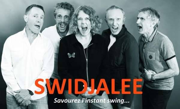 Avec son répertoire éclectique, allant de Nina Simone à Claude Nougaro en passant par Paolo Conte et Melody Gardot, SWIDJALEE propose un voyage plein de saveurs musicales variées, le temps d’une soirée ! Une pointe de swing, un zeste de jazz, un soupçon de bossa et une touche de joie, telle est la recette de notre joyeux quintet . Epicés, sucrés, salés, vous découvrirez avec délice nos morceaux choisis avec soin et ré-interprétés à notre sauce.