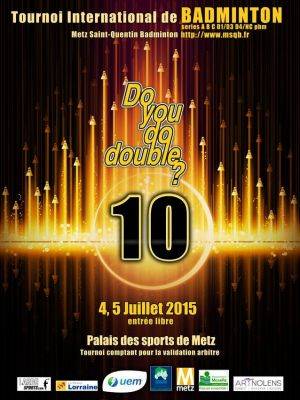 Cette année le Metz Saint Quentin Badminton vous propose de fêter le 10e anniversaire du DoYouDoDouble, les 4 et 5 Juillet 2014.