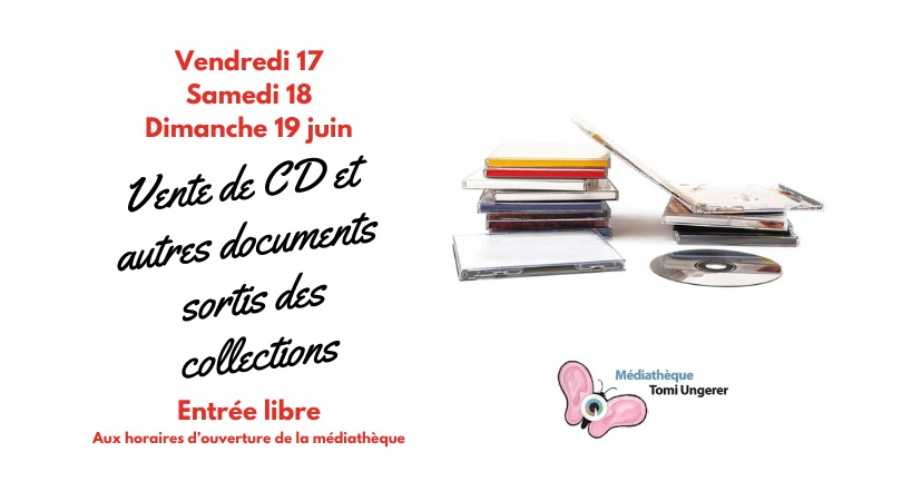 La médiathèque se sépare de certains documents déclassés des collections. Retrouvez de nombreux CD de tous styles, ainsi que des beaux livres et quelques bandes-dessinées...
