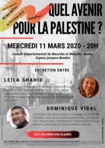 Exceptionnel - Conférence-débat - Quel avenir pour la Palestine ? Leïla Shahid & Dominique Vidal